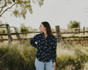 Lady Jane Outback Eclipse Navy Embroidered Organic Long Sleeve Linen Shirt