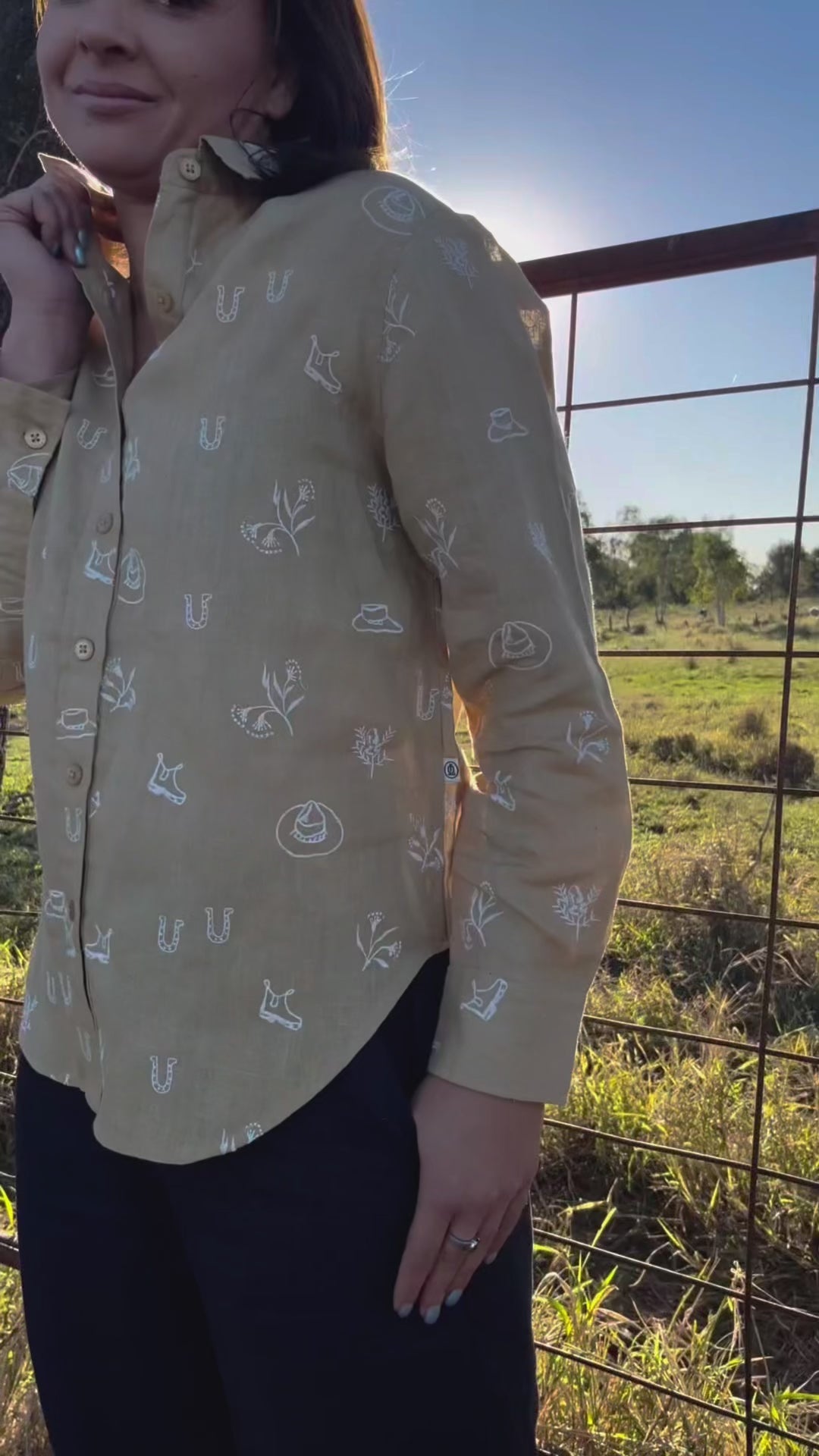 Lady Jane Desert Sand Embroidered Organic Linen Long Sleeve Shirt