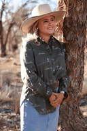 Rural Outback Spinifex Embroidered Organic Linen Long Sleeve Shirt New Release
