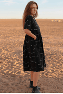 Rural Outback Eclipse Navy Embroidered Organic Linen Short Sleeve Dress Best Seller
