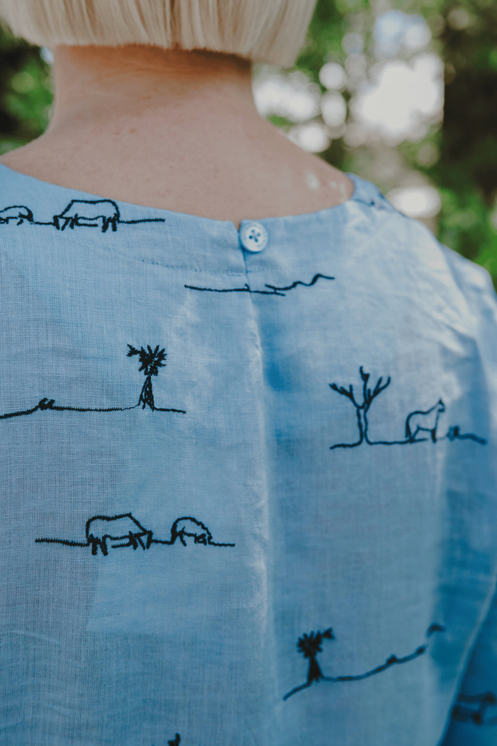 The heart of Outback Linen, original rural artwork translated into embroidered organic linen, designed to be worn and lived in.