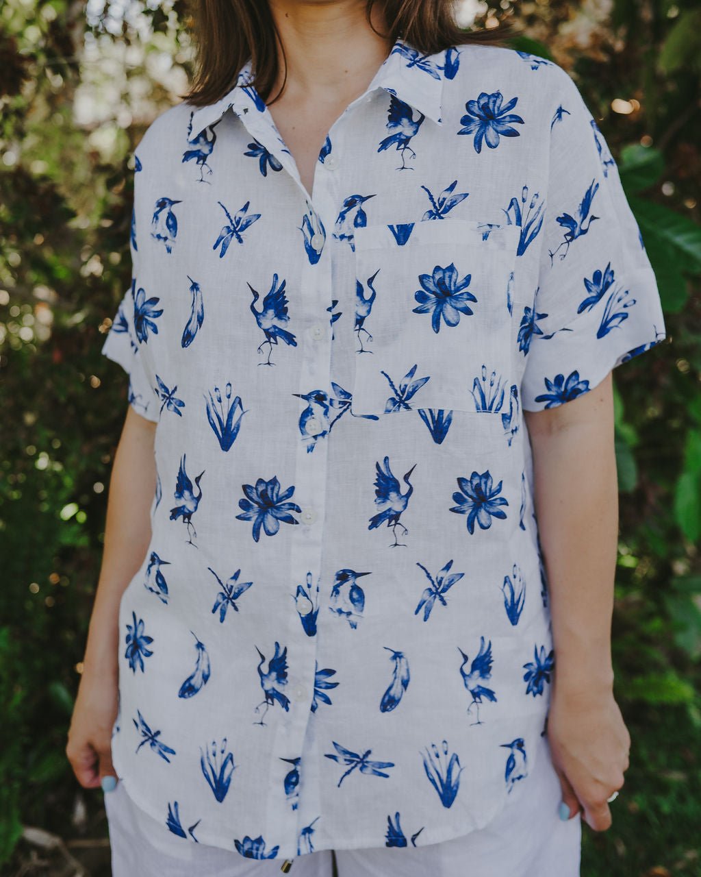 The Coastal Flight Linen Short Sleeve Shirt features exclusive artwork from a regional emerging artist, inspired by birdlife, open skies and the meeting of coast and country.