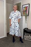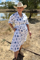 The Blue & White Bird Song Linen Short Sleeve Dress in collaboration with regional Artist Michelle Turner captures the peaceful rhythm of country mornings, the hush of dawn, the flutter of wings, and the calm before the day unfolds. Crafted from premium 100% organic linen, it brings together effortless comfort and understated elegance.