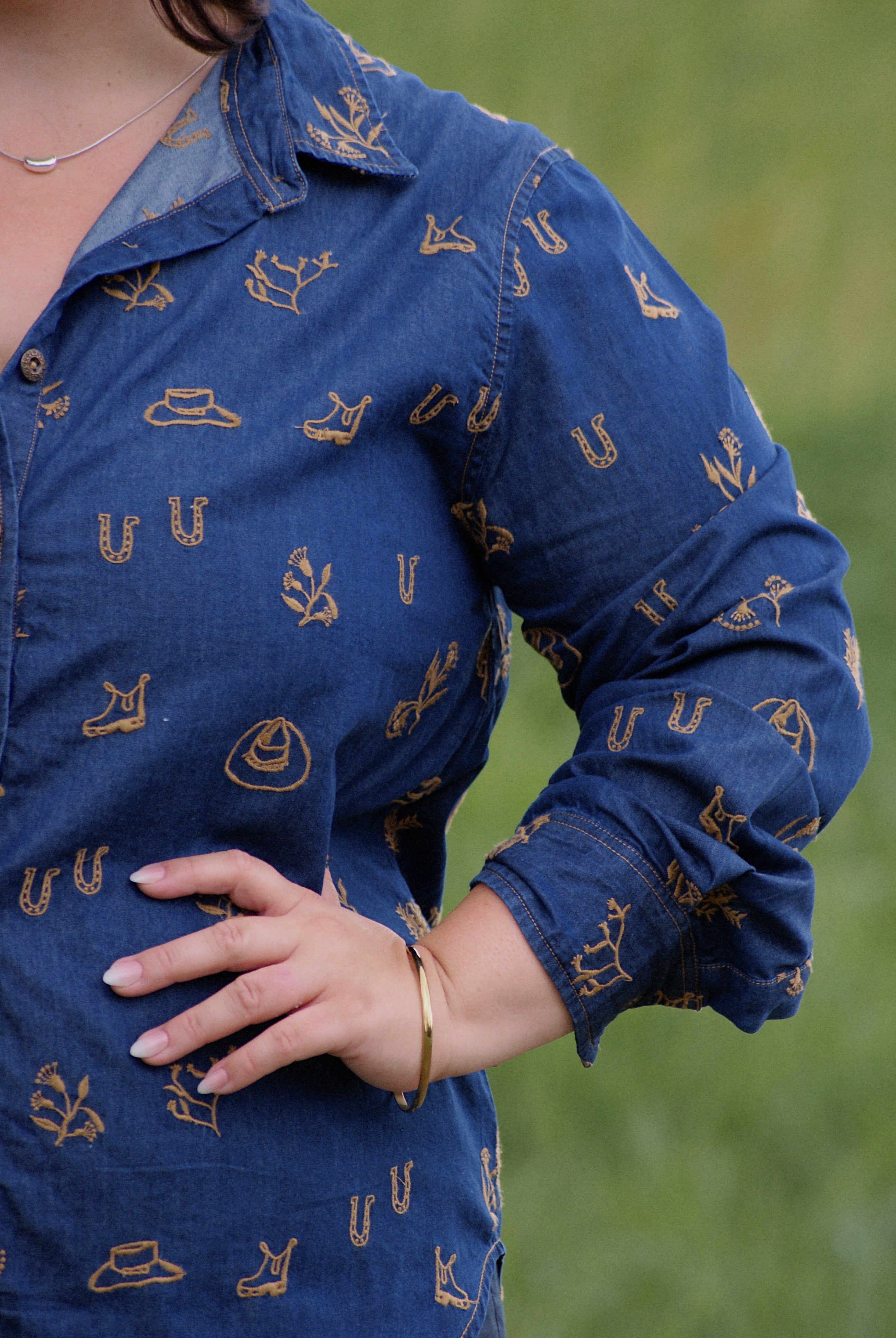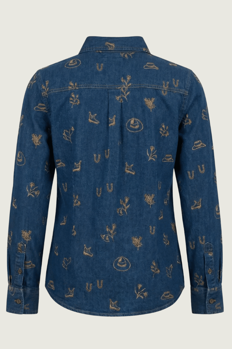 Dark Denim is the most elevated of the Lady Jane lineup. The rich indigo denim gives structure without stiffness, while the gold embroidery adds a subtle glow that catches the light (and compliments). She's perfect for cooler days, dinner plans, and any moment when you want to feel a little more put together without trying too hard.