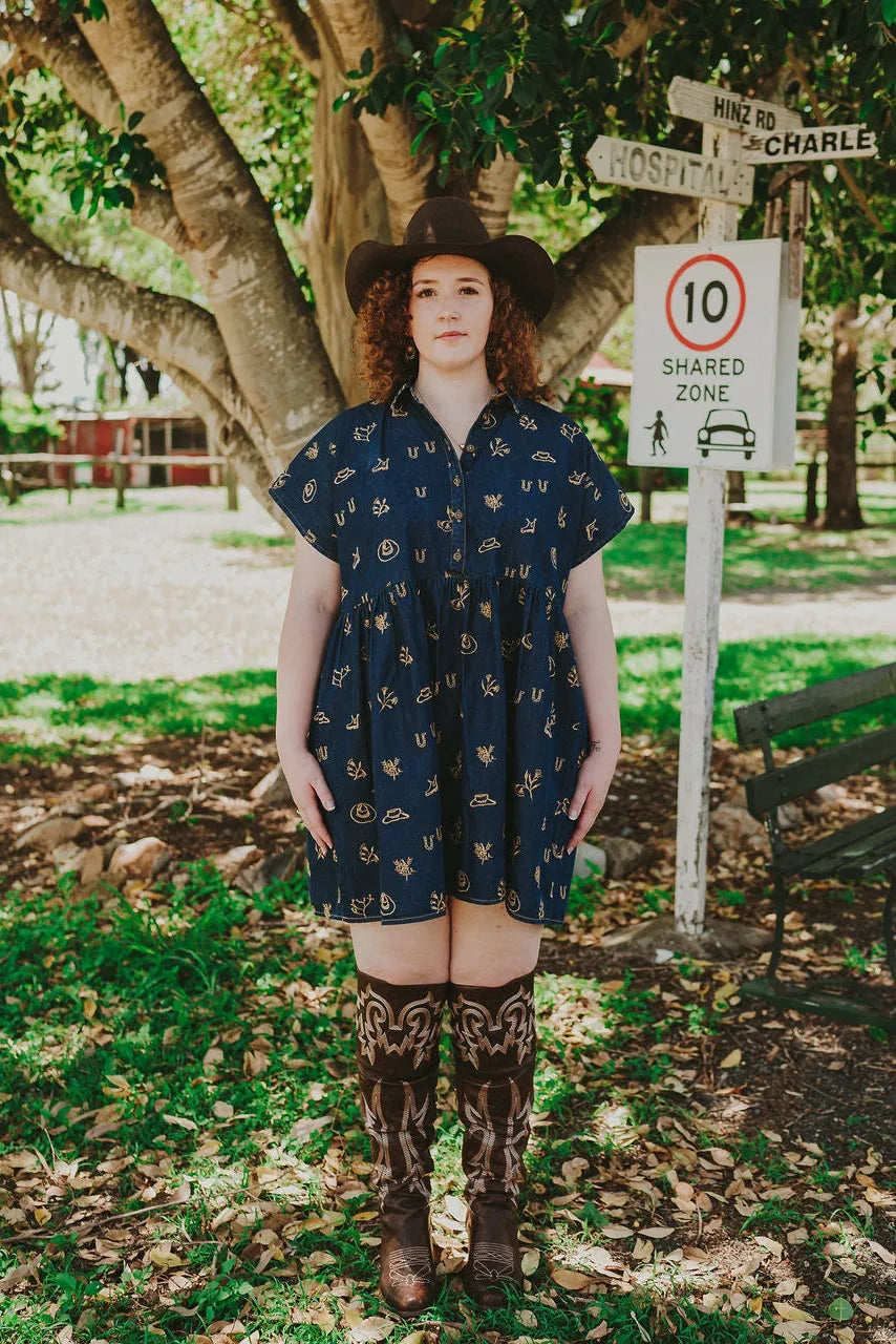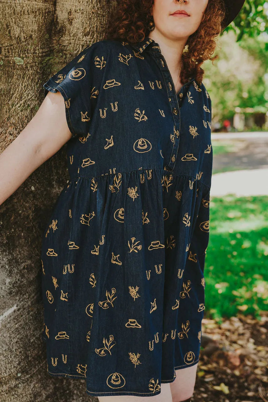 The Lady Jane Embroidered Denim Dress was made for the woman who lives with heart from dusty mornings to long lunches and late-night country tunes.