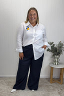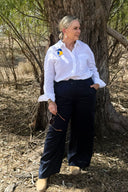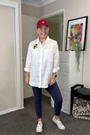 Kingfisher Embroidered White Organic Linen Long Sleeve Shirt