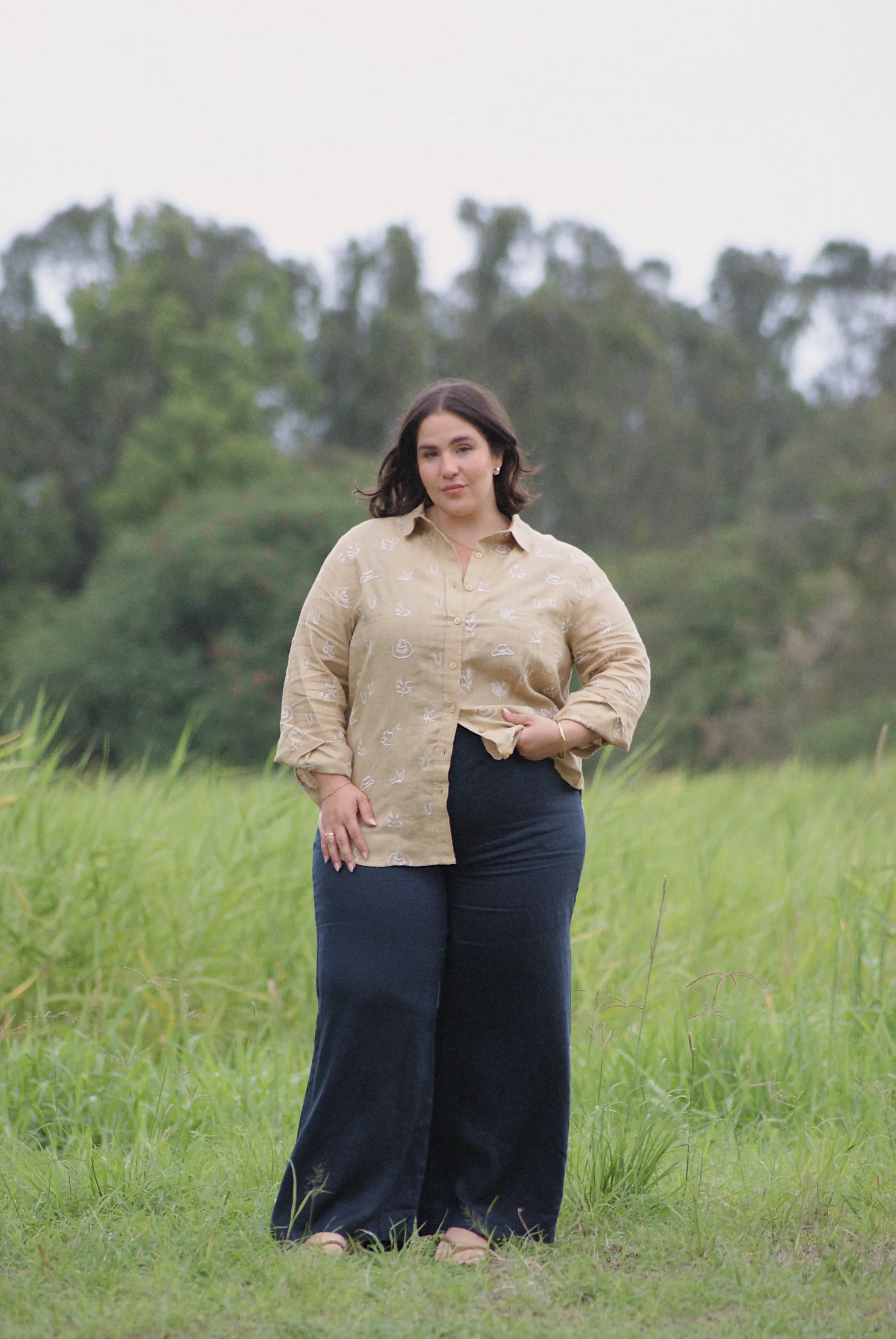 Our Organic Linen Pants are made to move with you… relaxed through the leg, structured at the front, and forgiving at the back (thank you, elastic waistband). Crafted from 100% organic linen in two grounded shades, Spinifex and Outback Eclipse, they’re breathable, flattering, and built for real women with real lives.