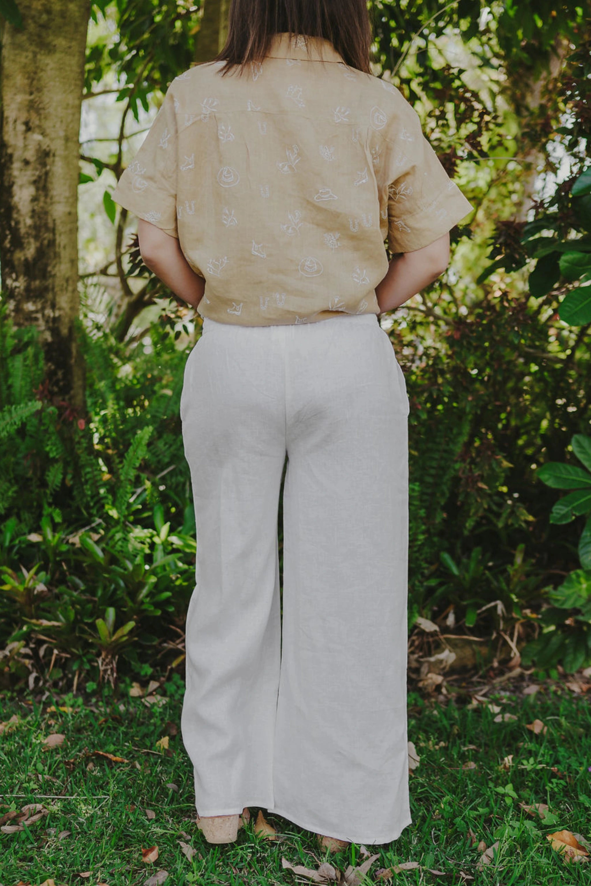 Our Organic Linen Pants are made to move with you… relaxed through the leg, structured at the front, and forgiving at the back (thank you, elastic waistband). Crafted from 100% organic linen in tthree grounded shades, White, Spinifex and Outback Eclipse, they’re breathable, flattering, and built for real women with real lives.
