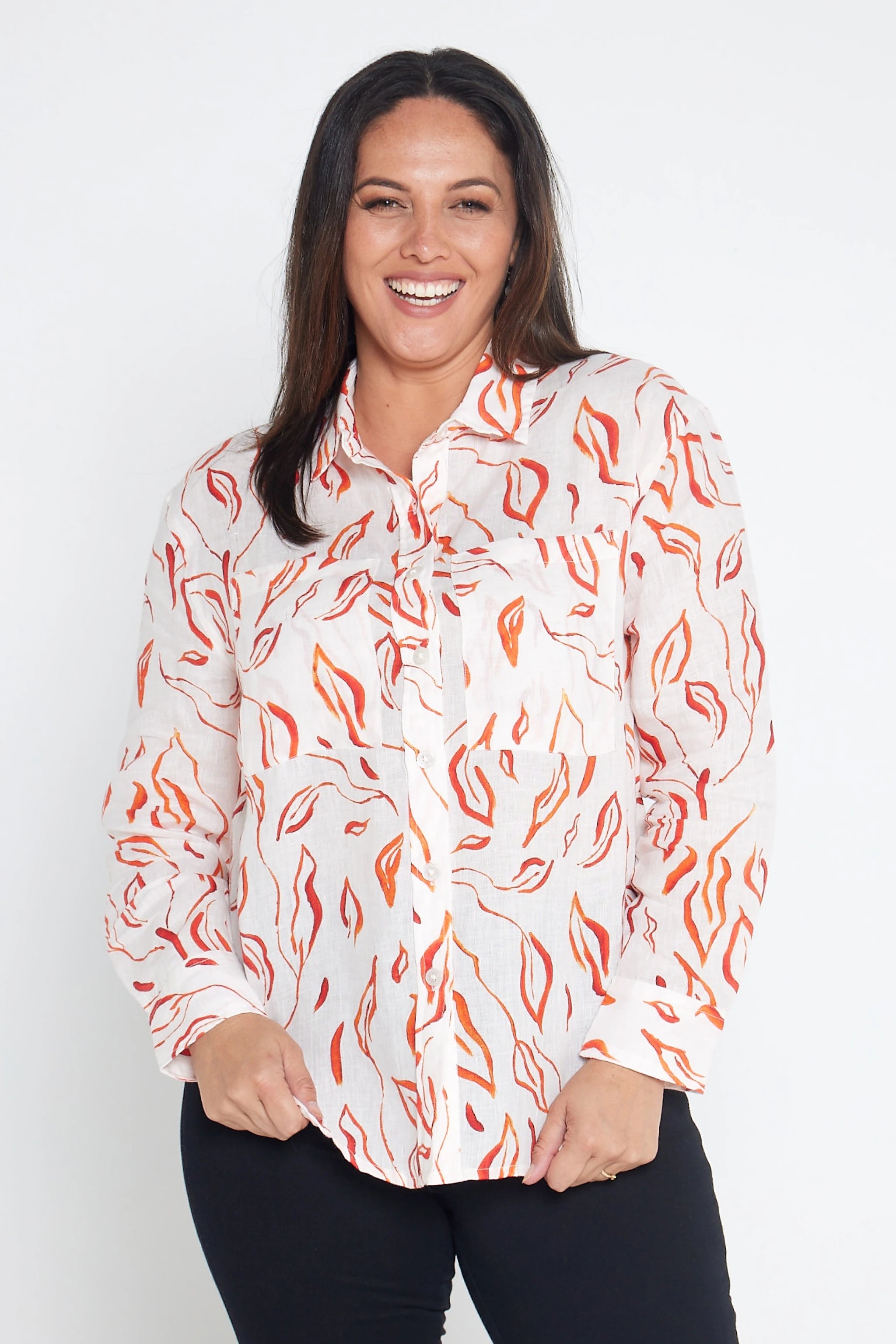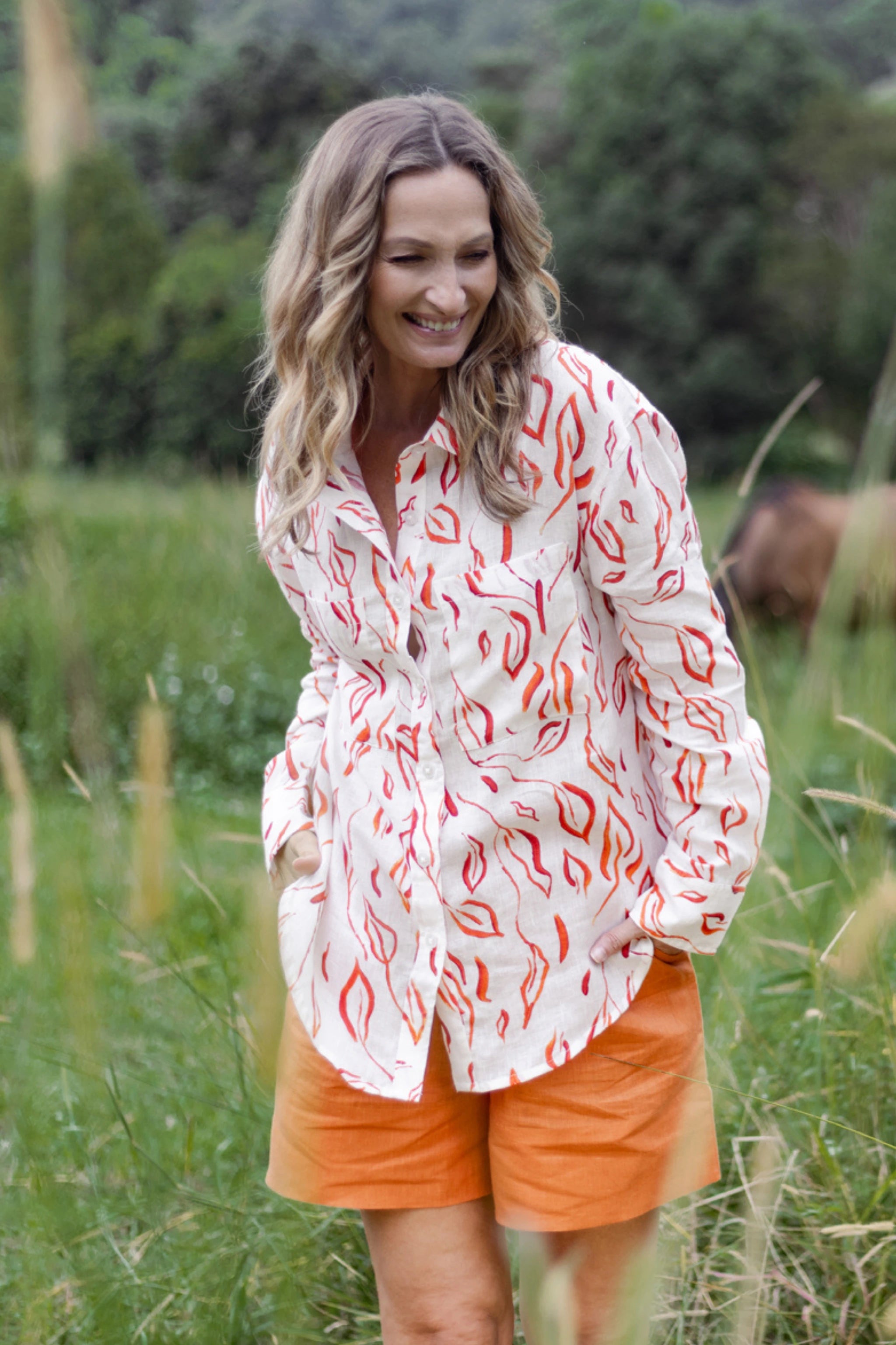 Gentle in tone, strong in story, the Outback Leaves Shirt is crafted from soft, breathable organic linen and printed with native-inspired foliage in warm, grounded hues.