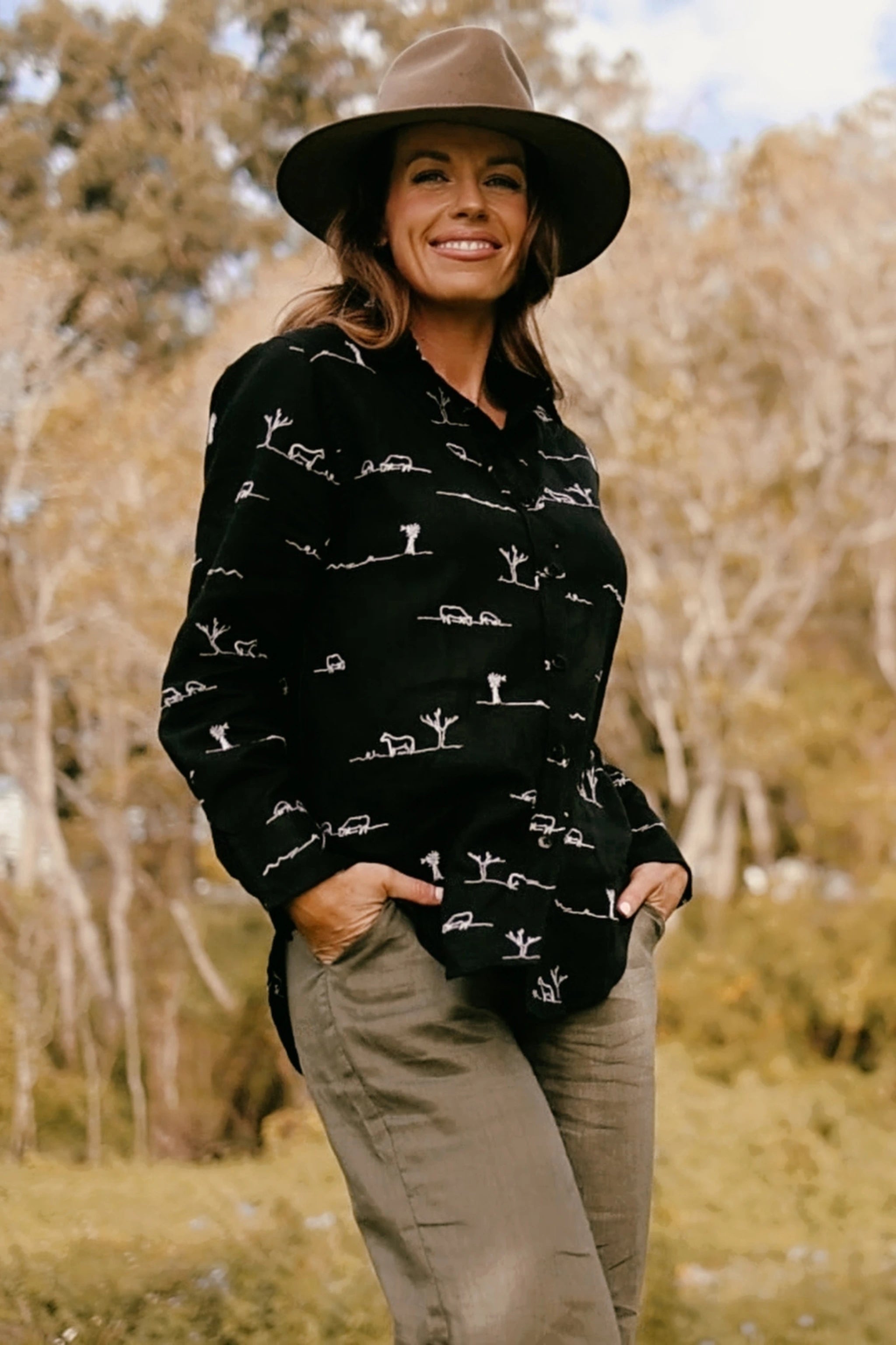 The Rural Outback Embroidered Linen Shirt is where heritage meets elevated everyday. Crafted from breathable, premium organic linen and adorned with original gold embroidery, each piece honours the rhythm and beauty of rural Australia, from grazing horses to the windmills that shape our horizon.