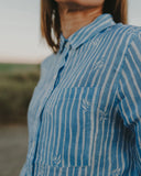 Bush Stripe Sky Blue & White Organic Linen Long Sleeve Shirt